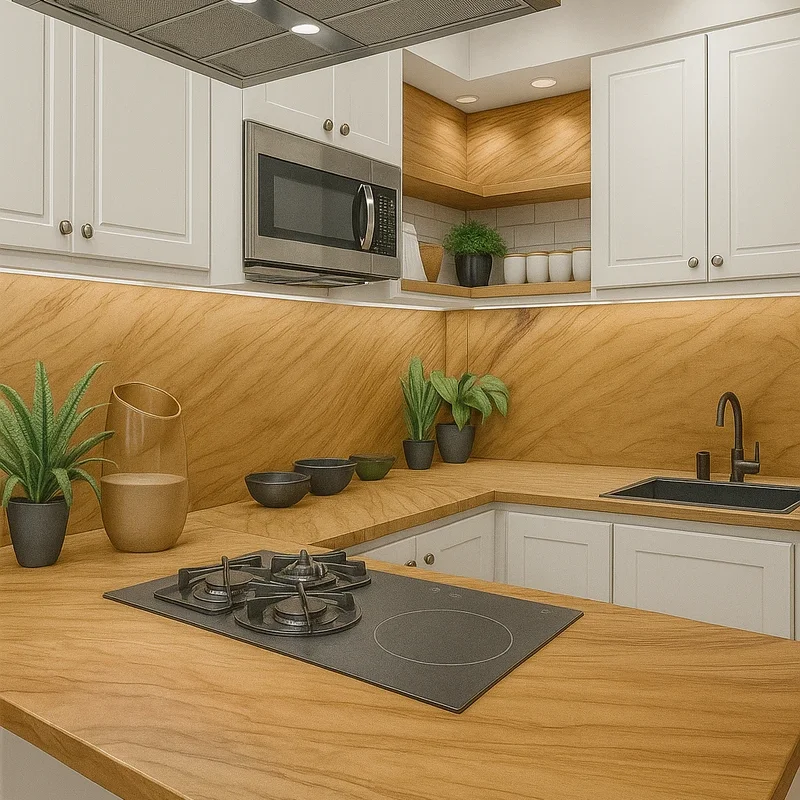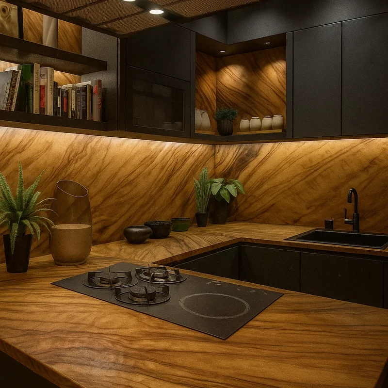 Legno, marmo, metallo o superfici innovative: scegli tra diverse soluzioni materiche per dare forma a un ambiente che rispecchia i tuoi gusti e le tue esigenze pratiche.